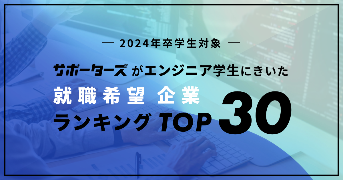 サポーターズ、「2024年卒 エンジニア学生対象 就職希望企業ランキング」を公開