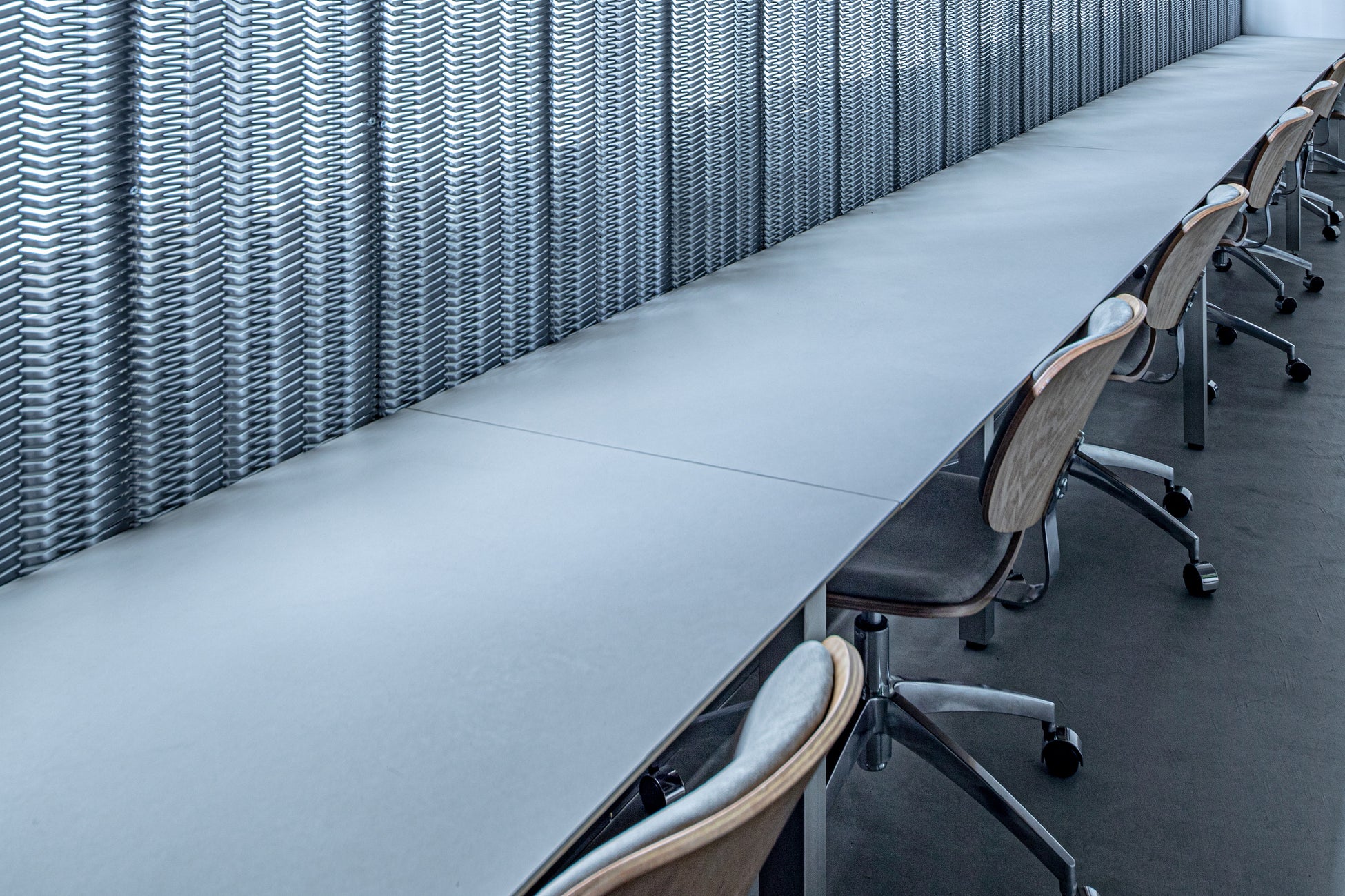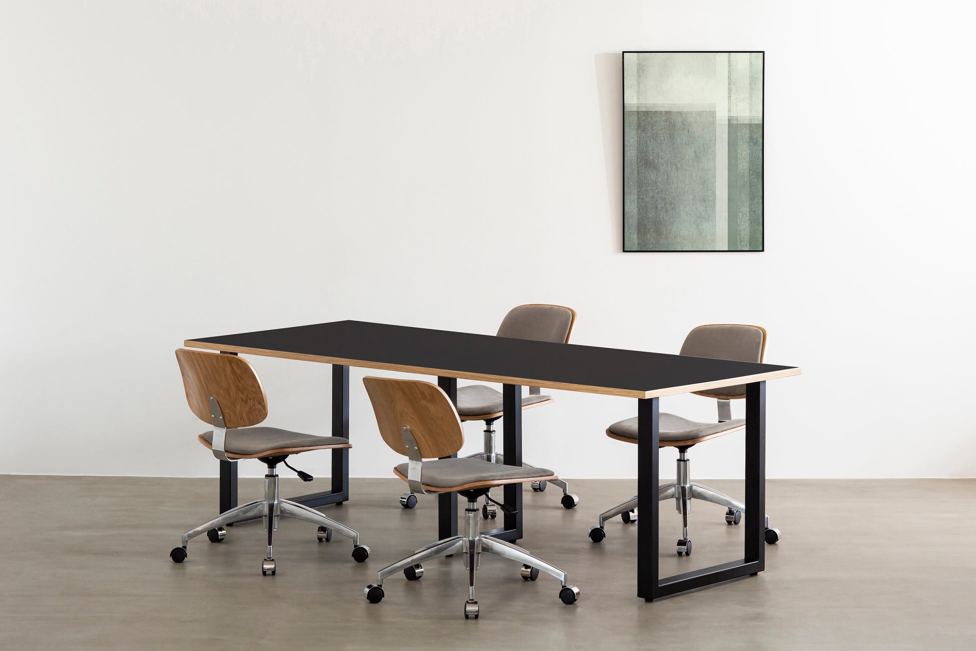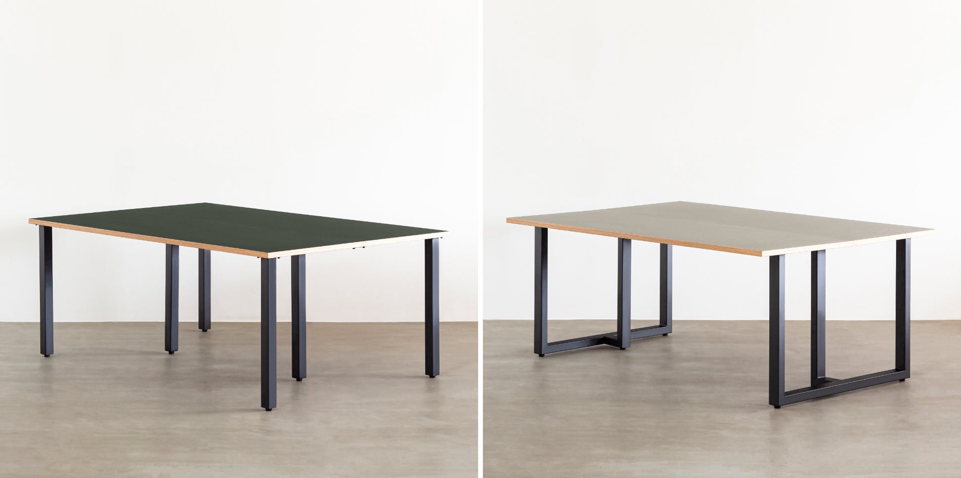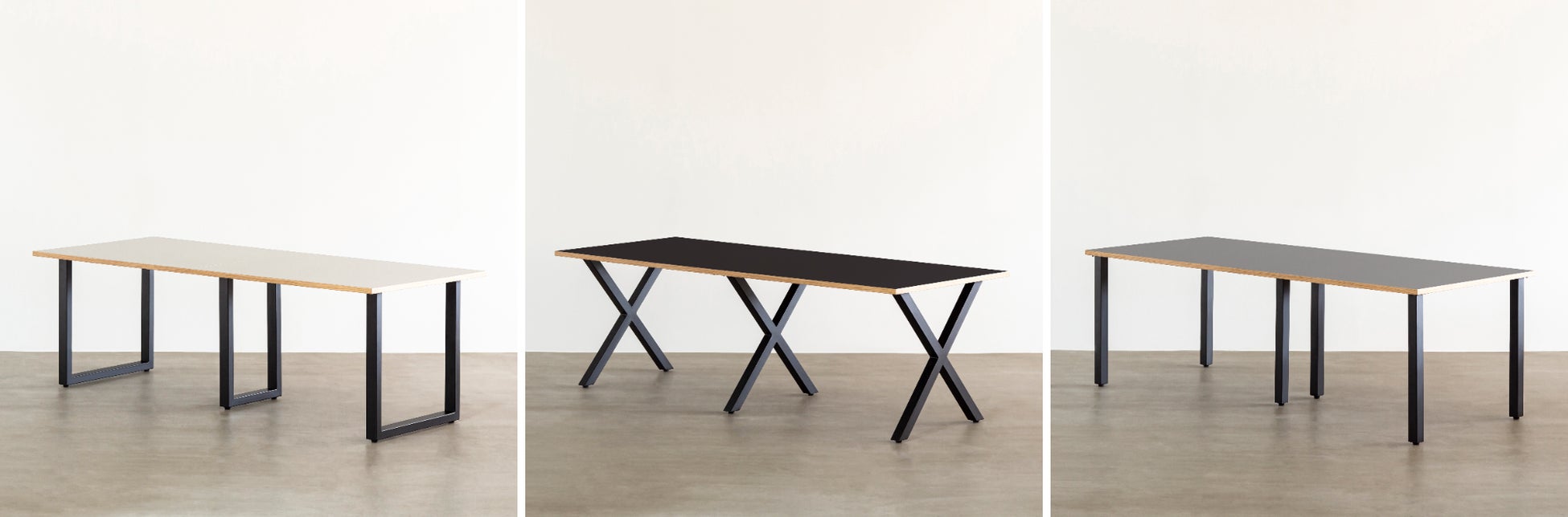 最大幅300cm・最大奥行120cmからサイズを選べるTHE TABLE / リノリウム(Special Order Size)5色を発売開始。オフィスでの大人数向けに、脚をすっきりとしたデザインに。