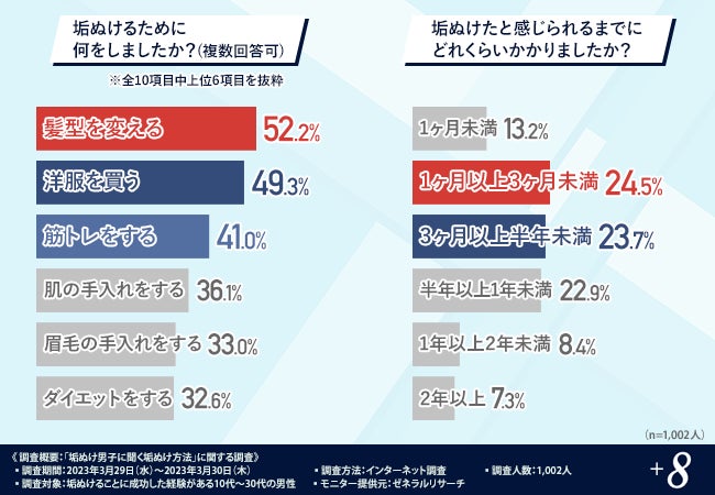 今回の調査で、垢ぬけた経験のある男性がどのような努力を行ってきたのか、今すぐに試せる垢ぬけ方法などが判明しました。