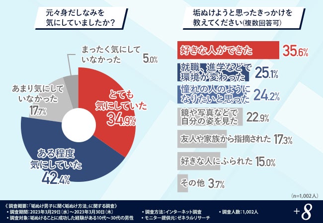 そこで今回、株式会社プラスエイト(https://www.plus8.bz/)は、垢ぬけることに成功した経験がある10代〜30代の男性を対象に、「垢ぬけ男子に聞く垢ぬけ方法」に関する調査を実施しました。