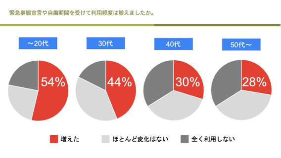 【質問】緊急事態宣⾔や⾃粛期間を受けて利⽤頻度は増えましたか。