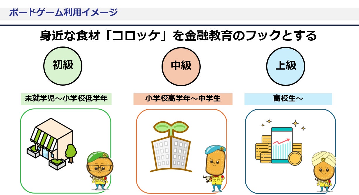 ファミスクがこれまで実施してきた、コロッケをテーマとする親子向け金融講座のコンテンツをボードゲームと段階的スクールカリキュラムに仕上げています。
