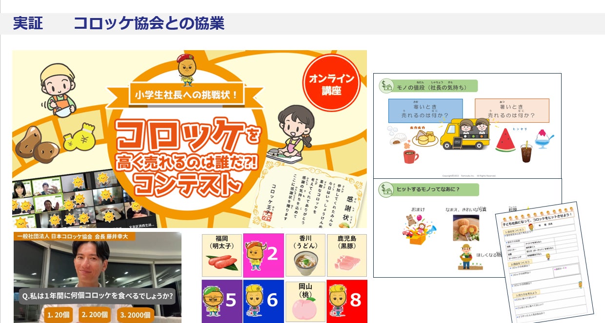 講座では、参加者が「コロッケ会社の社長」として売れる商品を作り、売れる仕掛けを考えながら、お金のことや経済のこと、会社や会計の仕組みを学びます。