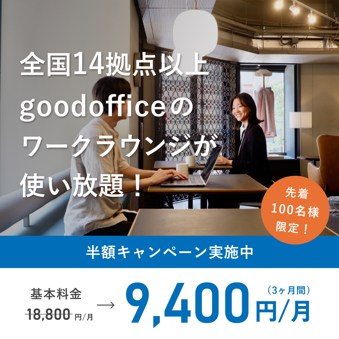①goodofficeワークラウンジプラン全拠点利用割引キャンペーン