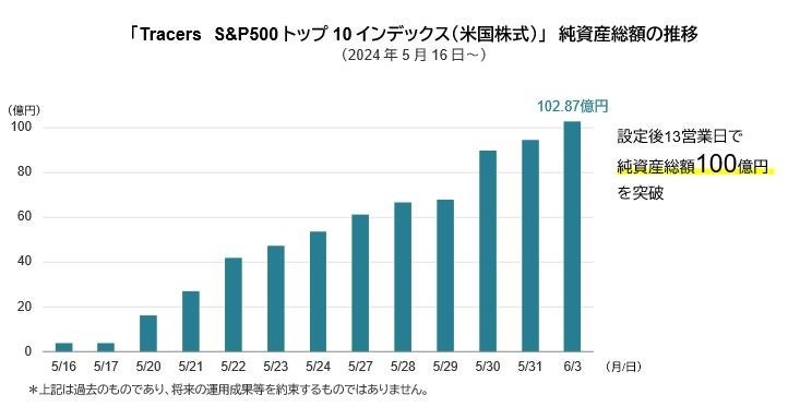 日興アセットマネジメント株式会社(以下、「日興アセット」)が2024年5月16日に設定・運用を開始した「Tracers S&P500トップ10インデックス(米国株式)」が、設定後13営業日で純資産総額100億円を突破*しましたのでお知らせいたします。