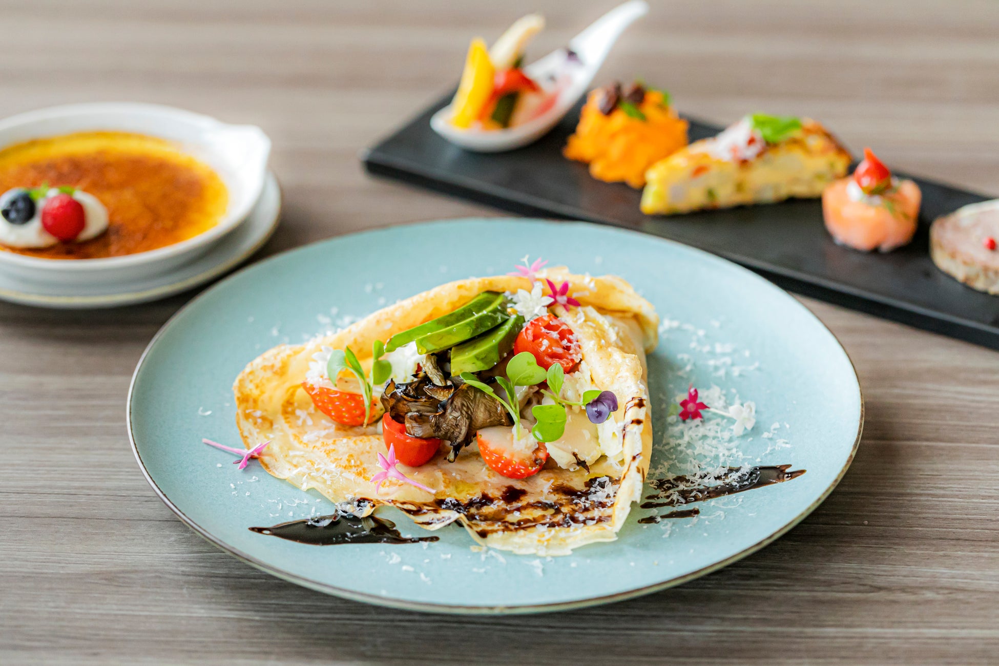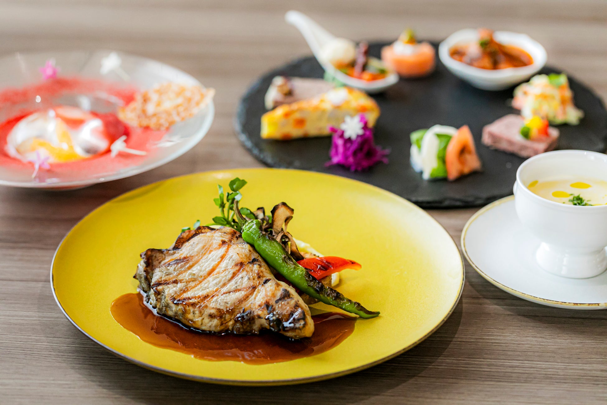 それぞれの料理には、シェフこだわりの各種ソースや季節の付け合わせを組み合わせることで、新たな味わいの広がりや意外な相性の発見をお楽しみいただけます。