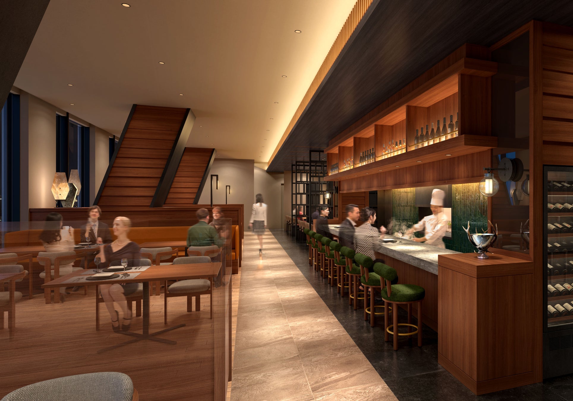 オープンキッチンを中心としたライブ感あふれる空間では、調理の臨場感とともに、お客様ご自身の好みに合わせた食べ方や味の変化を体感していただける、五感で味わうダイニング体験をお届けします。