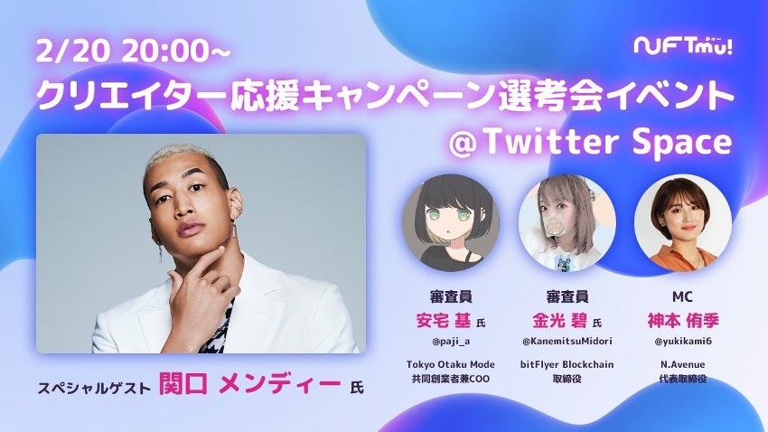 なお、β版リリースに合わせて実施中の「クリエイター応援キャンペーン」選考会イベント(2月20日夜20時〜 Twitter Space上で実施予定)には、スペシャルゲスト関口メンディー氏(EXILE)も参加予定です(※詳細は[こちらのプレスリリース](https://prtimes.jp/main/html/rd/p/000000022.000047016.html))。ぜひ聴いてみてください。