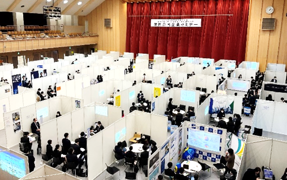 大学生の就職活動は新型コロナウイルスの感染拡大状況に合わせて、オンラインと対面を併用するハイブリッド型の選考が増加し、時流に合わせたスピードの早い対応が求められています。本学ではオンライン選考へのサポートを充実させながら、今年3月には学内で行う西日本最大規模の「学内合同企業セミナー」を対面に戻すなど、状況に合わせて学生と企業様の接点を構築し、内定獲得のサポートに全力を尽くしています。