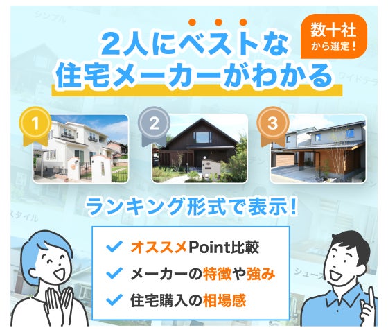 エリアや予算、デザイン、間取り、性能など約40の条件から選択することで、お客様に最も適した住宅メーカーをランキング形式でご案内します。