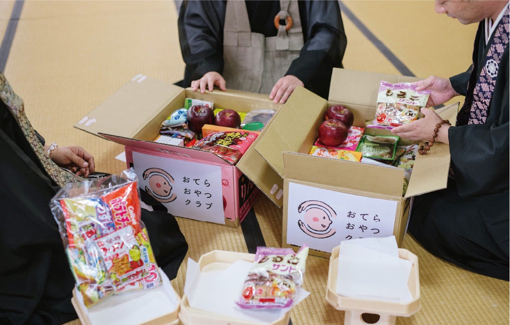 お寺にお供えされるさまざまな「おそなえ」を、さまざまな事情で困りごとを抱えるひとり親家庭へ「おすそわけ」する認定NPO法人。活動趣旨に賛同する全国のお寺と子どもやひとり親家庭等を支援する各地域の団体をつなげ、お菓子や果物、食品や日用品を届ける。(https://otera-oyatsu.club/)