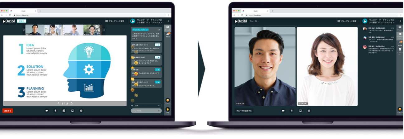 『Bizibl(ビジブル)』は、オンラインセミナーから個別商談や交流会へとシームレスに繋げられる、顧客コミュニケーションツールです。オンラインセミナーを営業窓口とした、ホットリード獲得をご支援します。