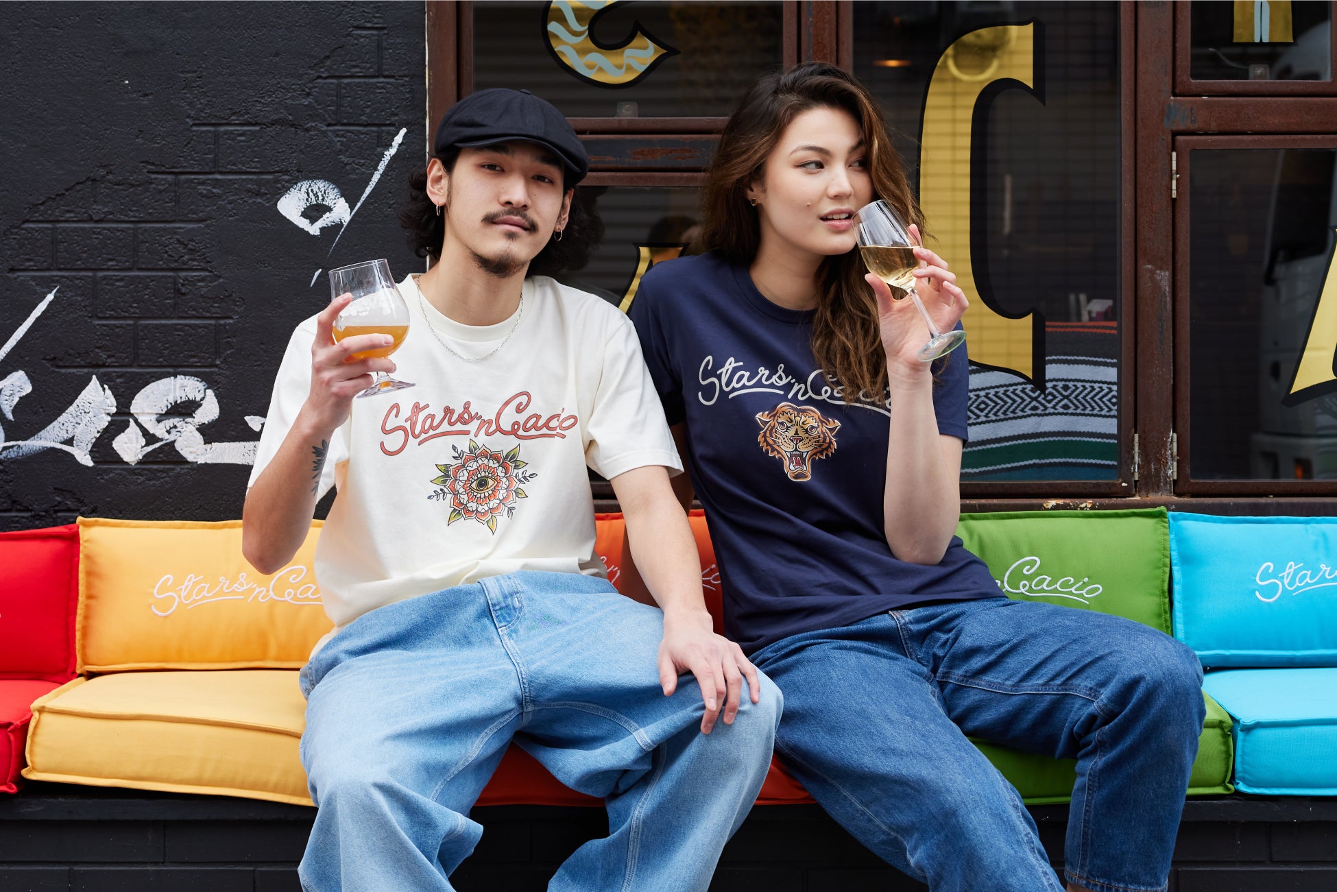Stars’n Cacioでの体験の鍵となるのは、リラックスできることです。緑豊かな中庭でも、ストリートアーティストのウスグロウが描いた作品で溢れる店内でも。さらに楽しんでもらえるよう、もう一歩進んで、今回初のクラフトビールを取り入れました。