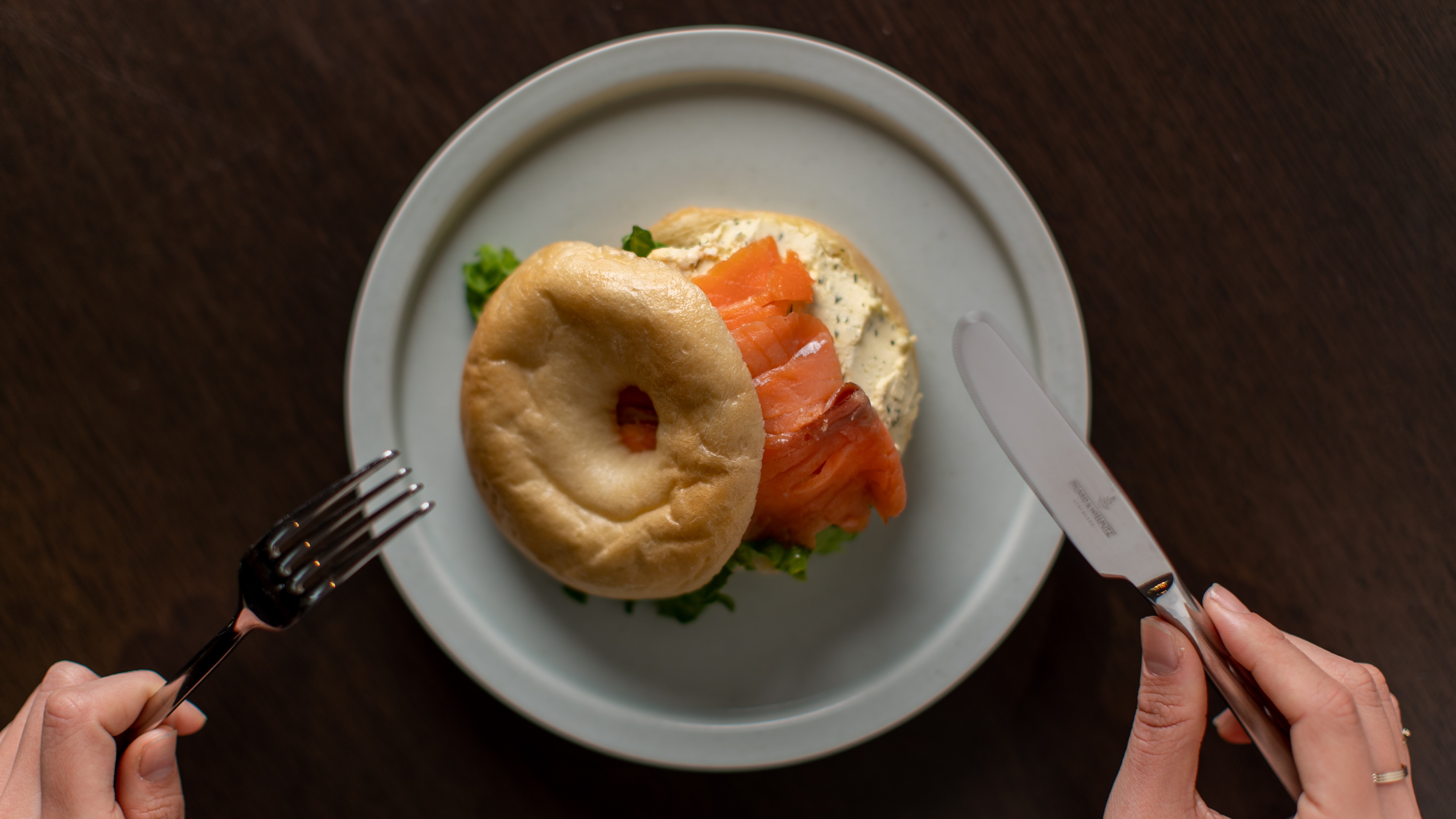 朝食にはベーグルサンドとドリンクのセットを販売。ベーグルは3種類からお選びいただけます。11時までご利用いただけますので、ゆっくり起きた朝のブランチにも最適です。
