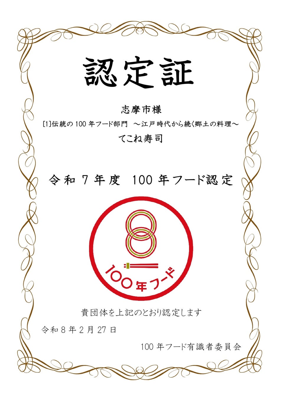 【100年フード」認定概要<※有識者特別賞受賞>