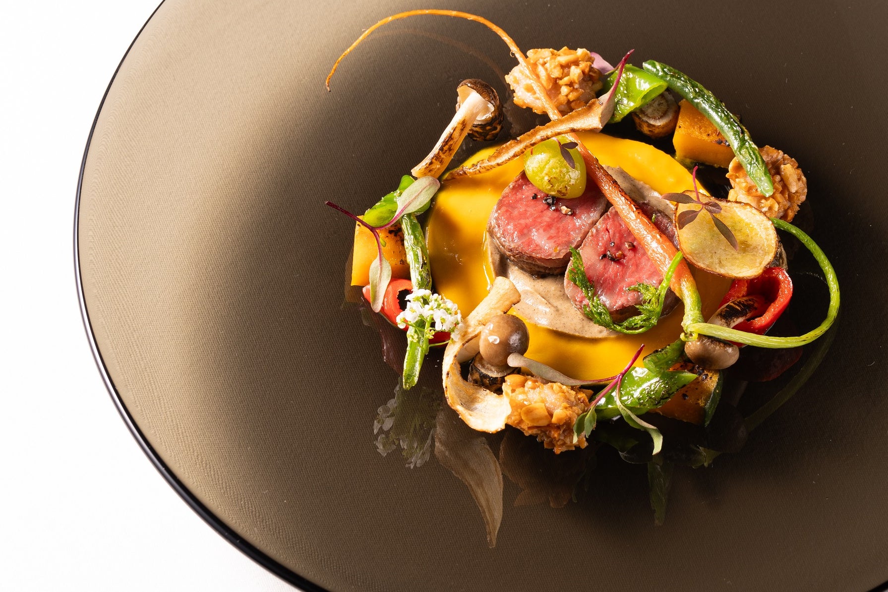 「丹波牛のミキュイ 丹波野菜のグリエ」