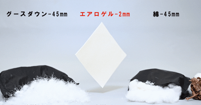 非常に軽く、断熱性の高い「エアロゲル」は、その断熱性の高さから過酷な環境で着用する”宇宙服”にも使われており、わずか2mmという薄さで-196℃の冷気も断熱できます。