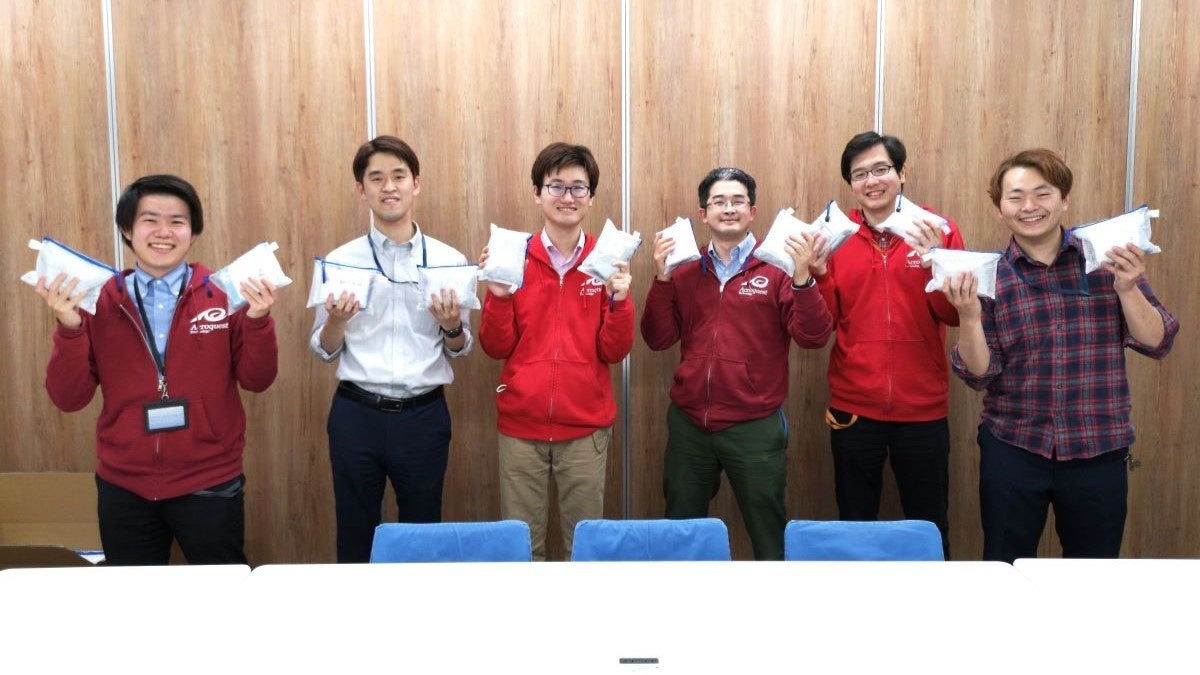 アクロクエストでは、外出時の「いざ」というときに役立つ防災用品11点を収納した『防災ポーチ』を作成し、全社員に配布しています。