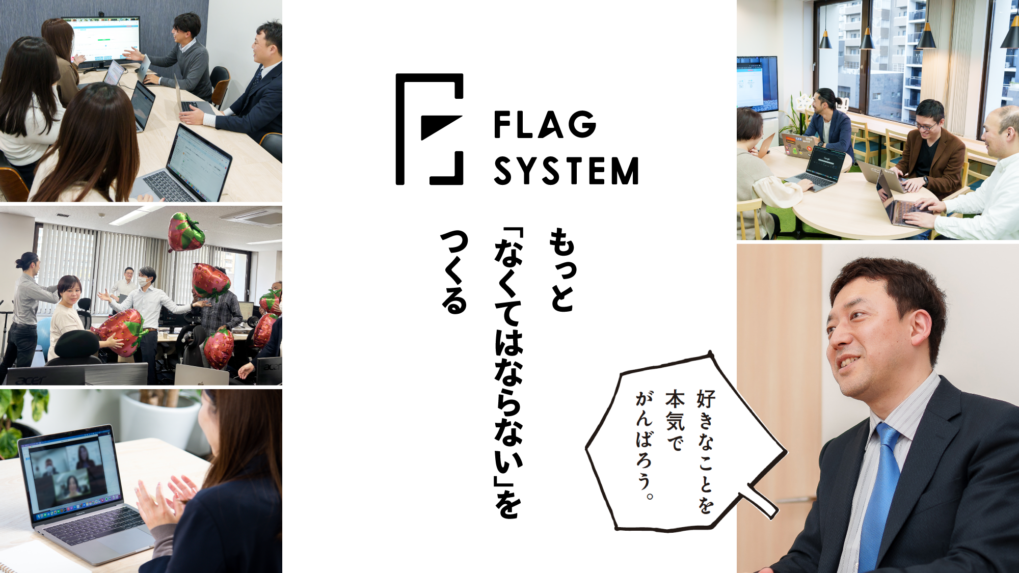 フラッグシステムでは、ビジョン・ミッションに共感し、ともに「なくてはならない」をつくっていく仲間を募集しています。 詳しくは採用ページ( https://www.flagsystem.co.jp/recruit )より詳細をご確認ください。