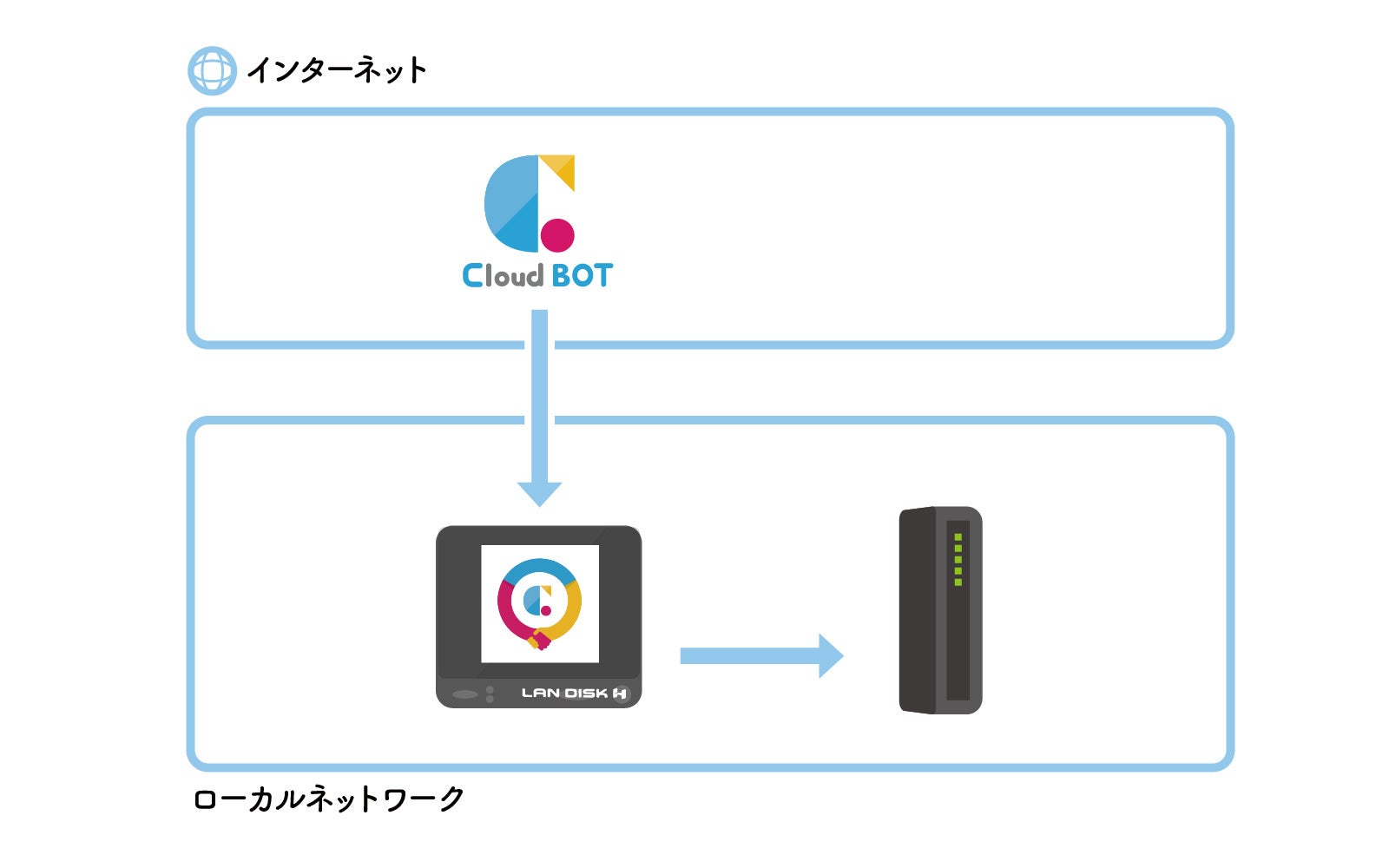 今回、Cloud BOT AgentがLAN DISKに標準搭載された事で、ローカルネットワーク内にLAN DISKを設置しておくだけで、昼夜問わずロボットがローカルネットワーク内にアクセス可能となり、飛躍的に利便性が向上した。