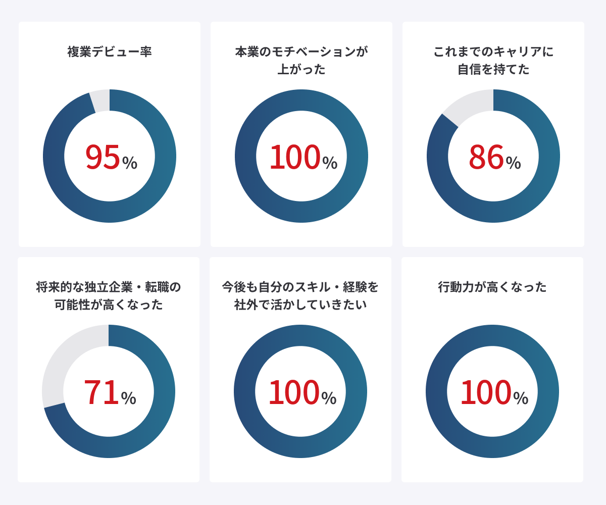 2022年3月にスタートしたライフシフトラボは、既に数百名の方にキャリアコーチングの機会をご提供しています。中には、プログラム期間中に月額報酬40万円の複業案件を獲得された方や、卒業後に中小企業の営業DX推進コンサルタントとして複業デビューされた方もいます。