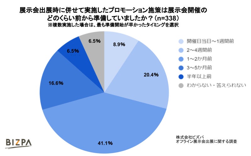 - 併せて実施したことがあるプロモーションの準備開始は4割以上が「1~2か月前」と回答