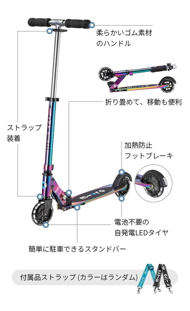 マイクロスプライトネオクロームLEDは子供から大人まで家族で乗れる初めての2輪にオススメのキックボードです。