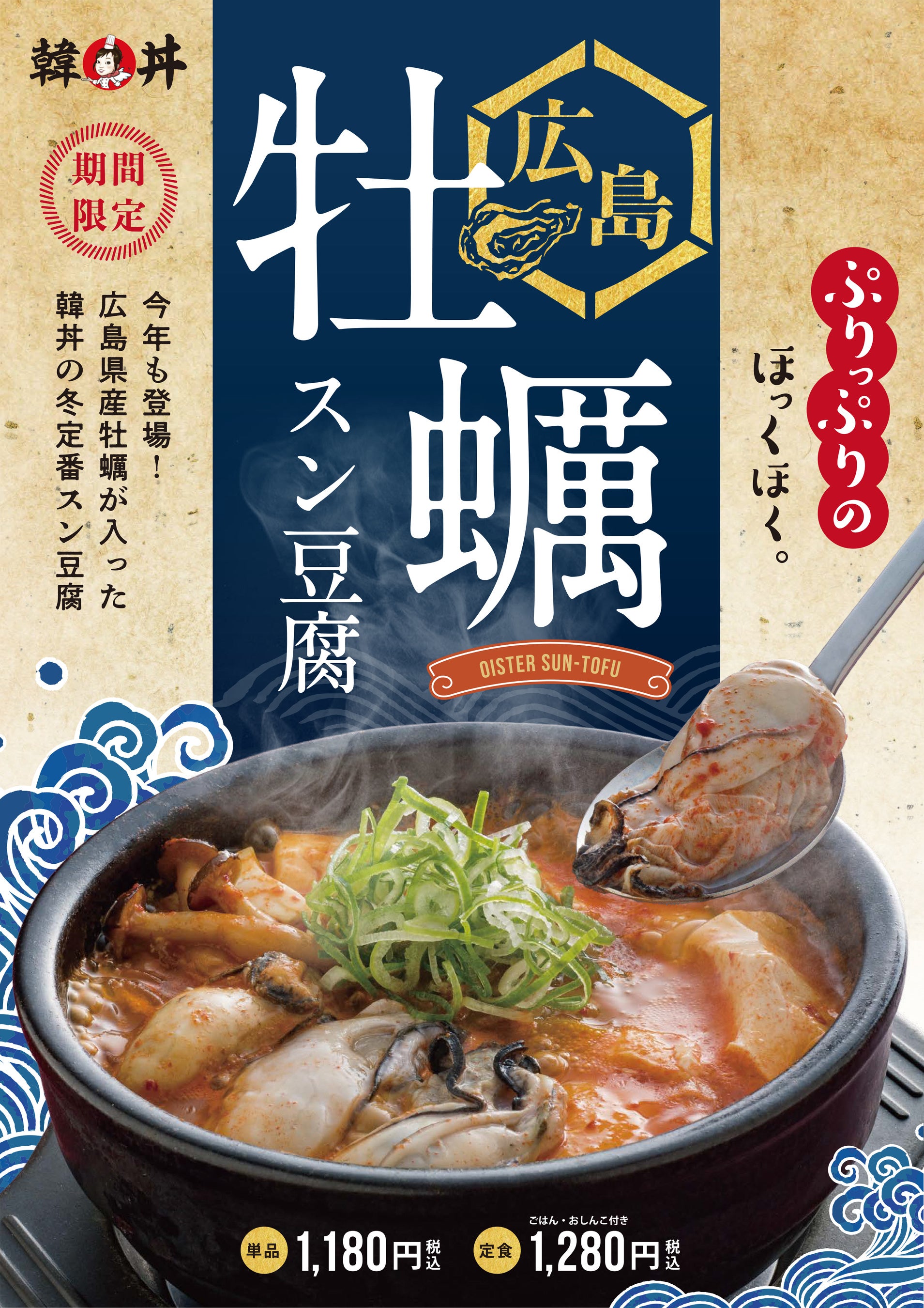 冬の贅沢!広島県産の大粒牡蠣がたっぷり カルビ丼とスン豆腐専門店「韓丼」期間限定「広島 牡蠣スン豆腐」