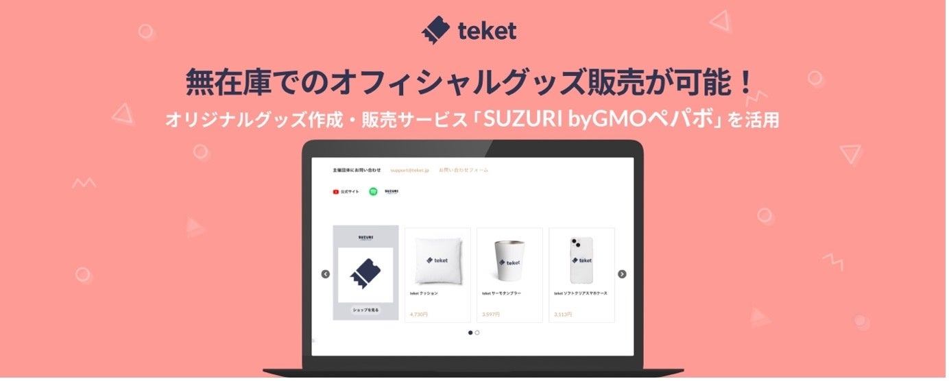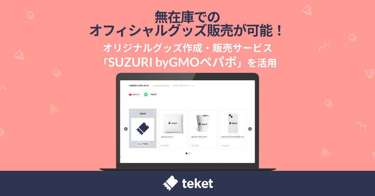 電子チケット販売サービスteket、オリジナルグッズ作成・販売サービス「SUZURI byGMOペパボ」を活用し無在庫でオフィシャルグッズの販売が可能に