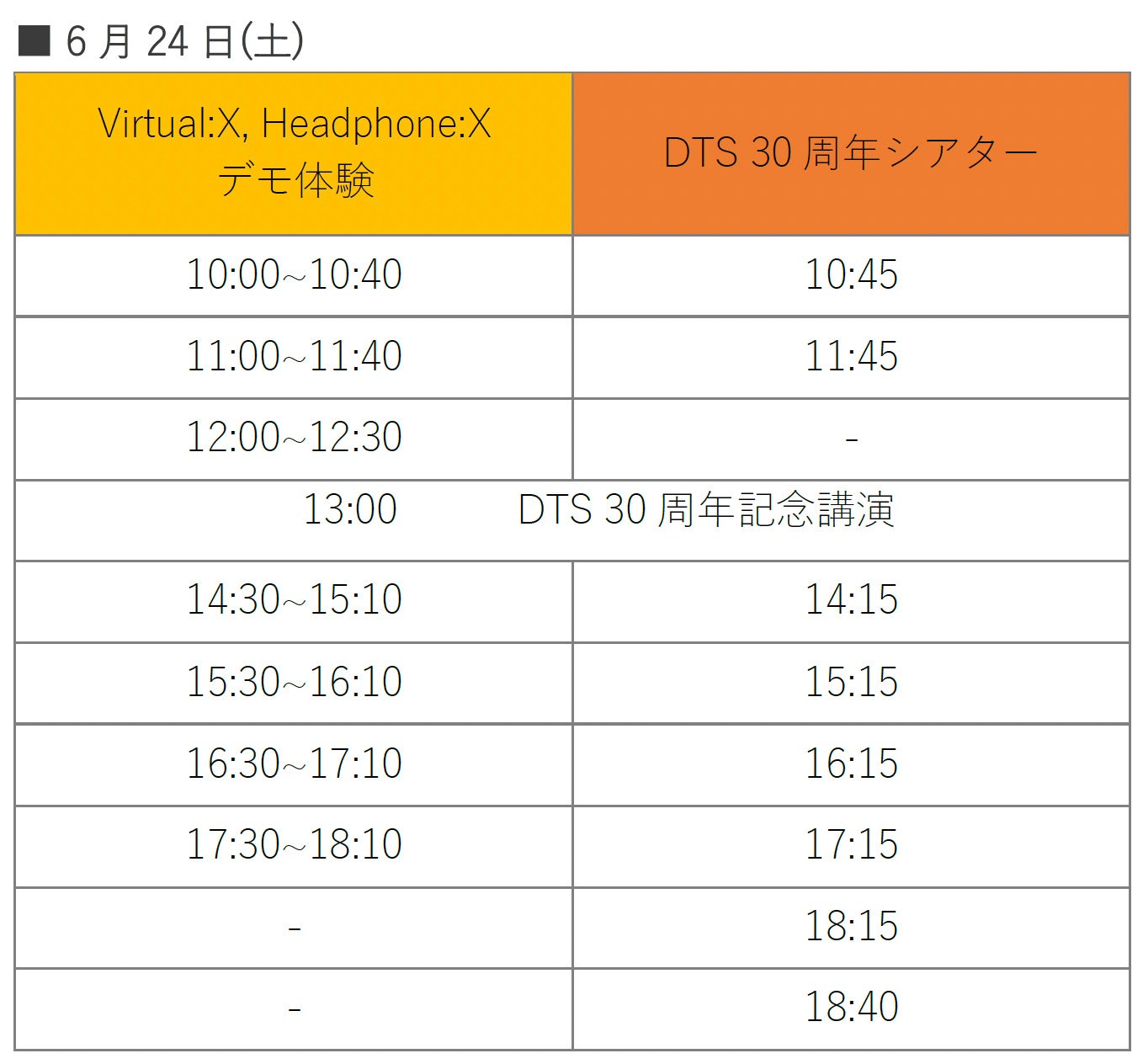 カンファレンスルーム507を貸し切り、DTSとIMAX Enhancedのホームシアター体験と併せて、Virtual:XやHeadphone:Xの技術のデモをご体感いただけます。また、両日ともに、