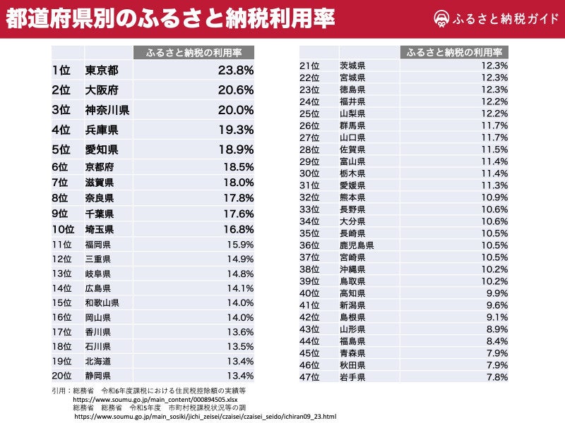 ふるさと納税の都道府県別「利用者数・利用率」と「平均寄附金額」を発表|2024年最新データ