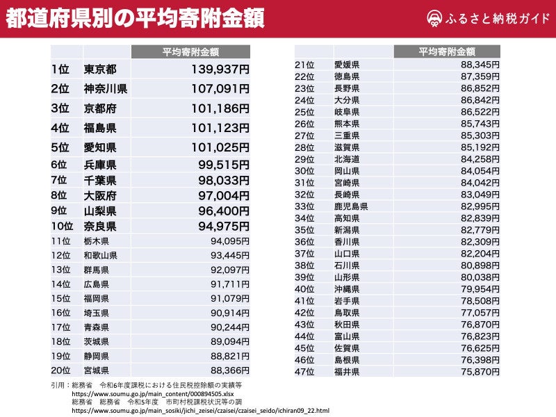 以上、2024年総務省発表データに基づいた、ふるさと納税の都道府県別「利用者数・利用率」と「平均寄附金額」でした。