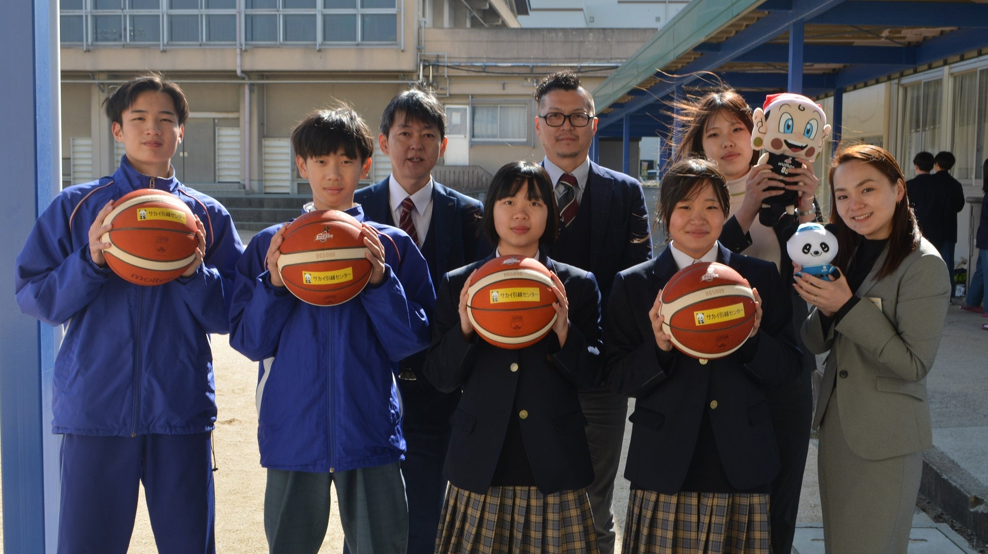 株式会社サカイ引越センター(大阪府堺市:代表取締役社長 田島 哲康)は、プロバスケットボール『B.LEAGUE』 大阪エヴェッサを通じて、堺市美原区の中学校3校にバスケットボール4球ずつ、合計12球を寄贈いたしました。当社は大阪エヴェッサのオフィシャルゴールドパートナーを務めており、 9年連続でバスケットボールの寄贈を行っています。今回は、寄贈先である堺市立美原中学校に訪問し、バスケットボール部の皆さんにご出席いただき、贈呈式を行いました。また、バスケットボールの寄贈に対して、堺市教育委員会より感謝状をいただきました。