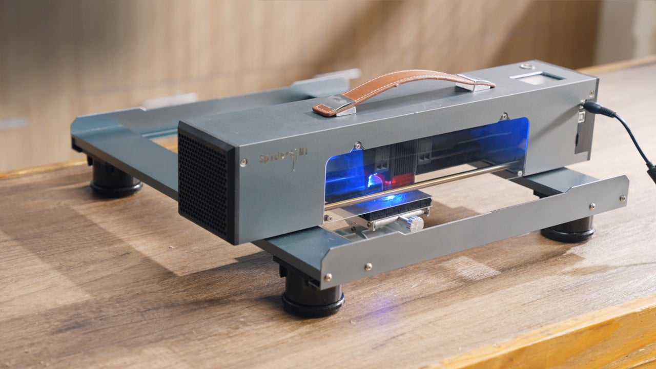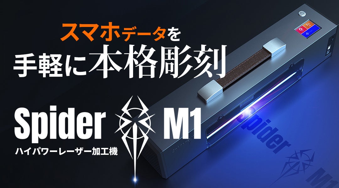 スマホで簡単操作のポータブルレーザー彫刻機&カッターSpider M1。 彫刻機とは思えないコンパクトな設計かつ組み立て不要で手軽にプロ仕様の彫刻&切断が行えます。