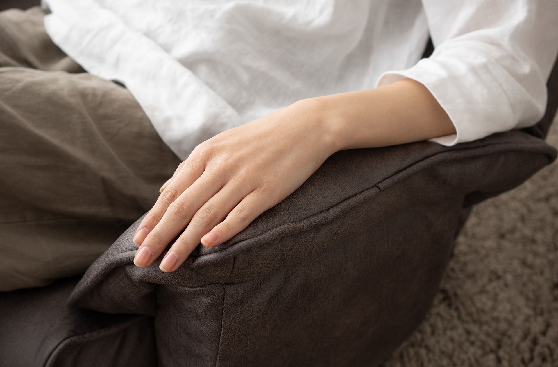 ゆったりとした寛ぎに欠かせない肘掛けにも、ファブレザーを使用。クッション性があり、なめらかな触り心地で、リッチな気分が味わえます。