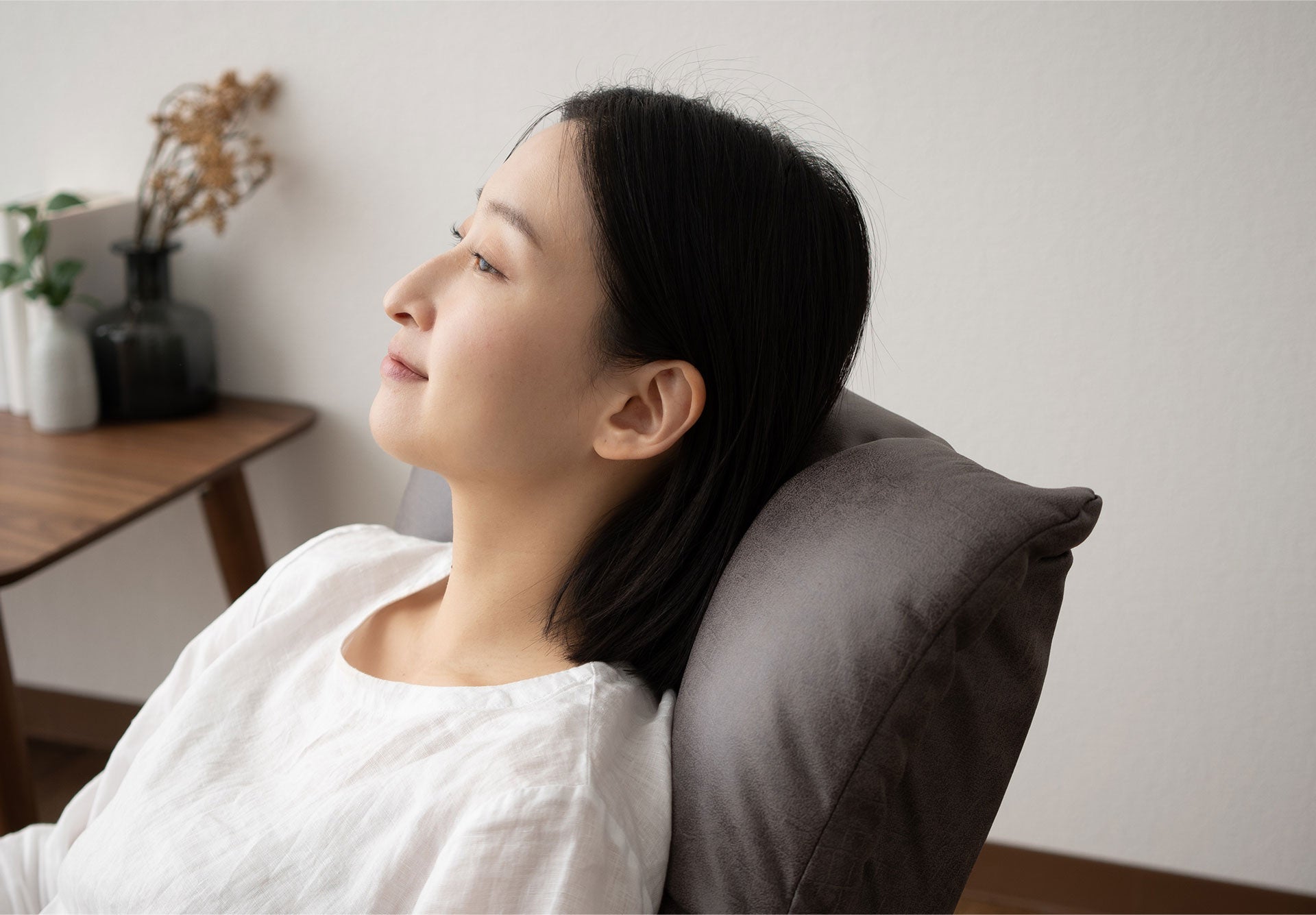 高さのある背もたれは、程良い弾力で包み込まれるような座り心地。首までゆったりもたれかかることで、極上の癒しを得られます。