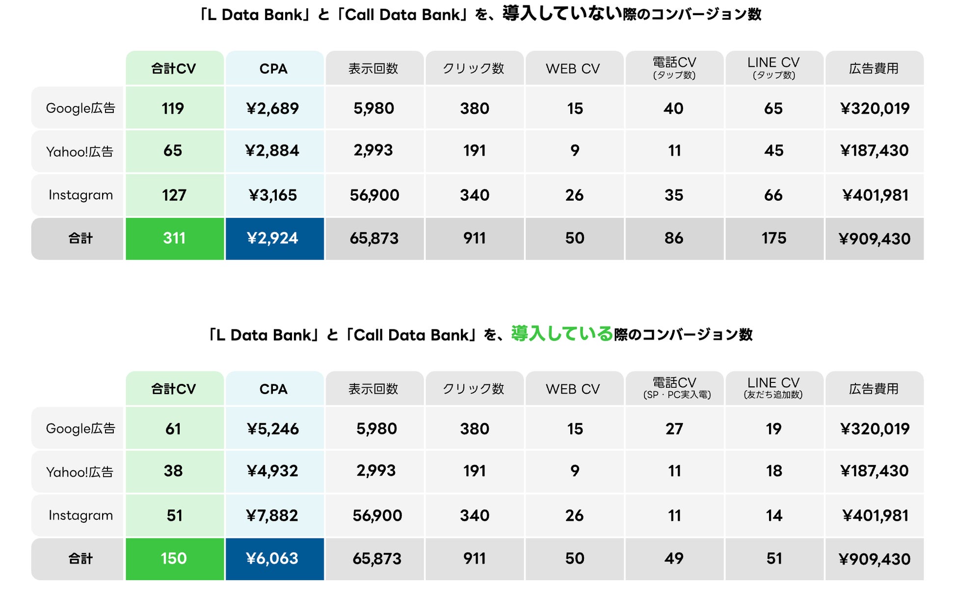しかし「L Data Bank」の利用により正確なCVデータが計測できれば、算出されるCPAも正確性を増し、広告戦略において重要な判断材料となり得ます。