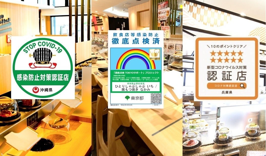 ひとりしゃぶしゃぶ いちでは全店舗でコロナ対策を実施し、各自治体のガイドラインに沿って認証ステッカーを取得しております。可動式の間仕切りや換気設備の設置、従業員・お客様の検温や手指の消毒の実施なので複数名のお客様については間の間仕切りを外すことも可能です。