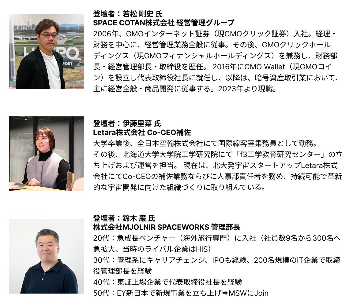 宇宙産業への挑戦を考える方にとって、自らの経験をどのように活かせるかヒントを得られる機会です。