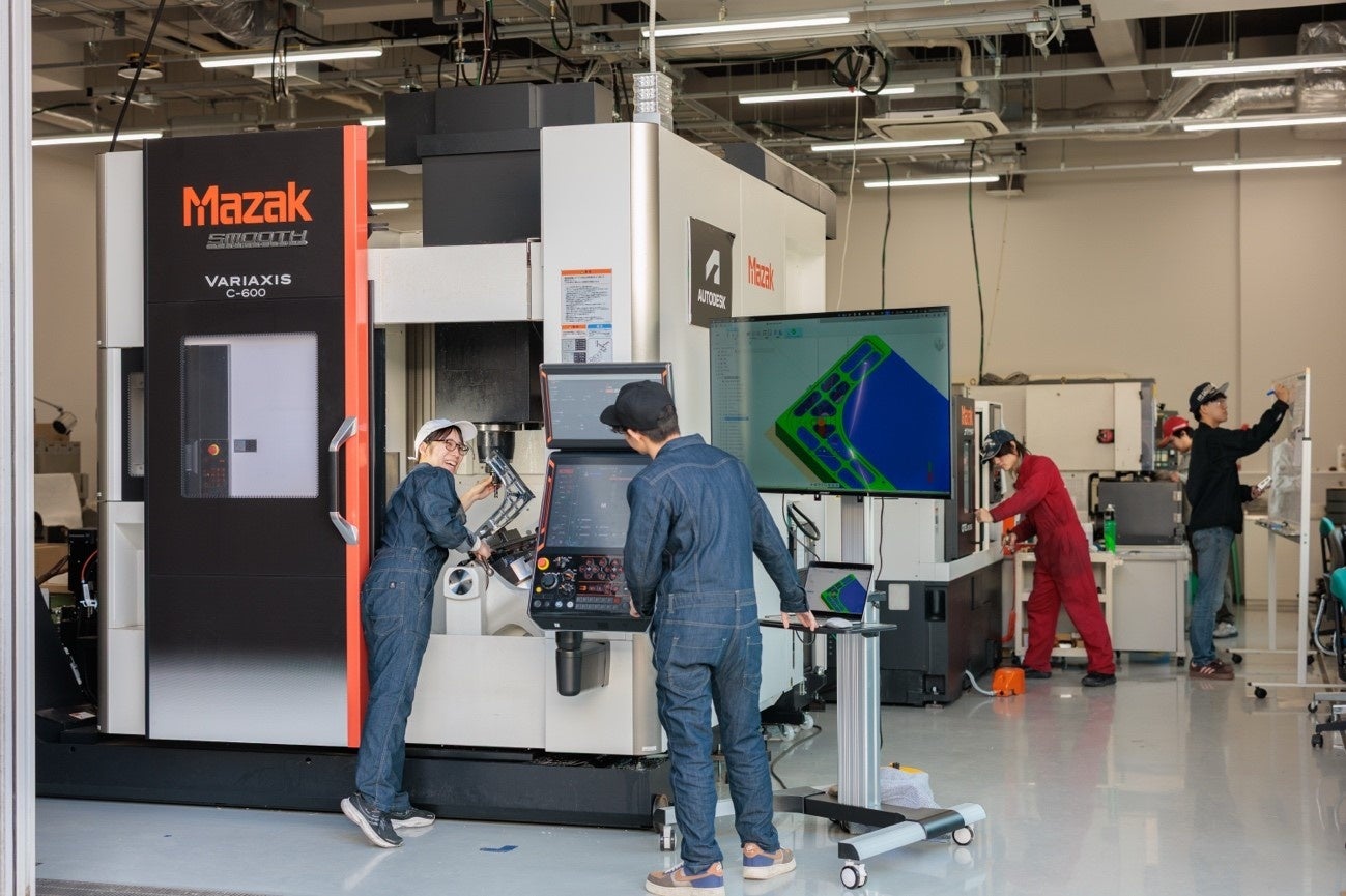 この教育モデルを象徴するのが、学部 2 年生から 5 軸加工機を扱う点です。5 軸加工は、航空機やモータースポーツ分野で用いられる高度な製造技術であり、通常は大学院や企業研修で扱われる領域です。