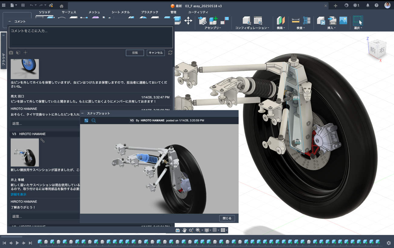 「Fusion を使うことで、設計から製造までを一つの流れで進めることができました。クラウド上でデータを共有しながら、メンバーや先生とリアルタイムでやり取りできるため、開発スピードが大きく向上しました」