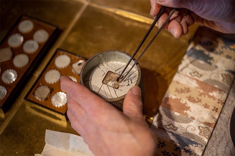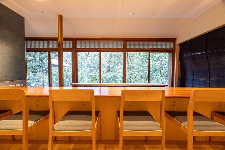 名園を望むカウンターを貸切。非公開施設で行う香道三品大枝流家元による「お香の会」