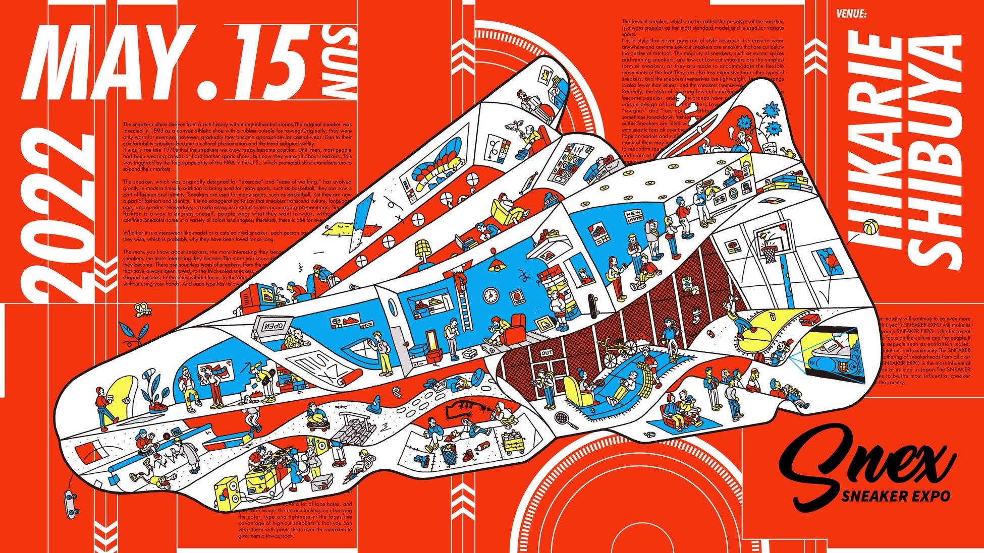 記念すべき第1回開催の『Snex』のメインビジュアルは日本人アーティストの海道建太氏が担当し、国内最大のスニーカー&ハイブランドフリマ「スニーカーダンク」と真贋鑑定サービス「フェイクバスターズ」がメインスポンサーを務めます。