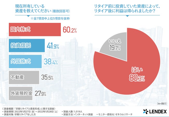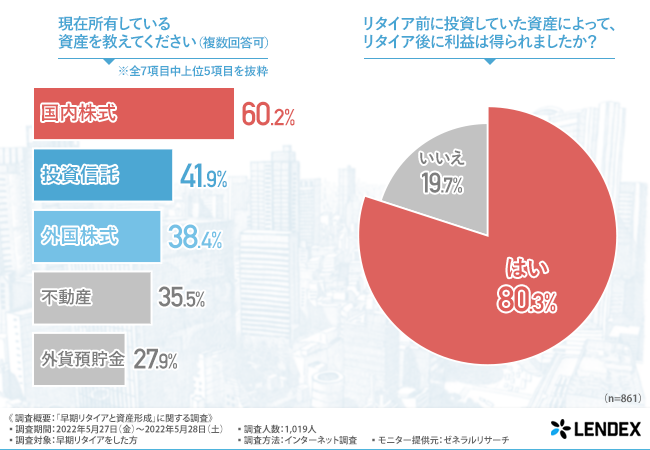 早期リタイアに至るまでの資産形成と現状を調査してみると、8割の方がリタイア後にも利益を得られていることが分かりました。