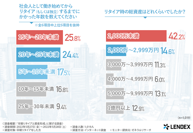 そこで今回、ソーシャルレンディングサービスを提供する株式会社LENDEX(https://lendex.jp)は、早期リタイアをした方を対象に、「早期リタイアと資産形成」に関する調査を実施しました。