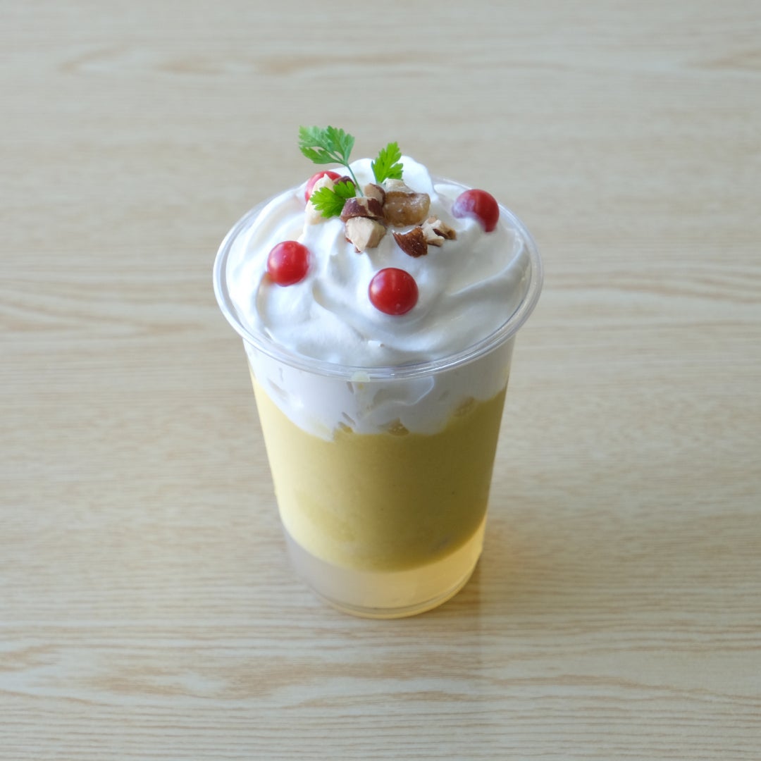 - 満腹感が得られます:「だしとうまみ」のすりながしは一杯で満腹感を得られるというコンセプトでつくられています。そのため、出汁ジュレ、蒟蒻、白玉、ナッツなどトッピングにも工夫をしています。