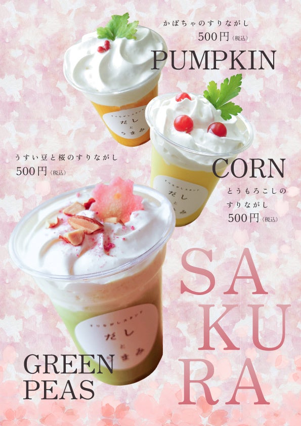 「すりながしスタンド だしとうまみ」より春の新作登場。桜の香りいっぱいの"うすい豆と桜のすりながし"など2種