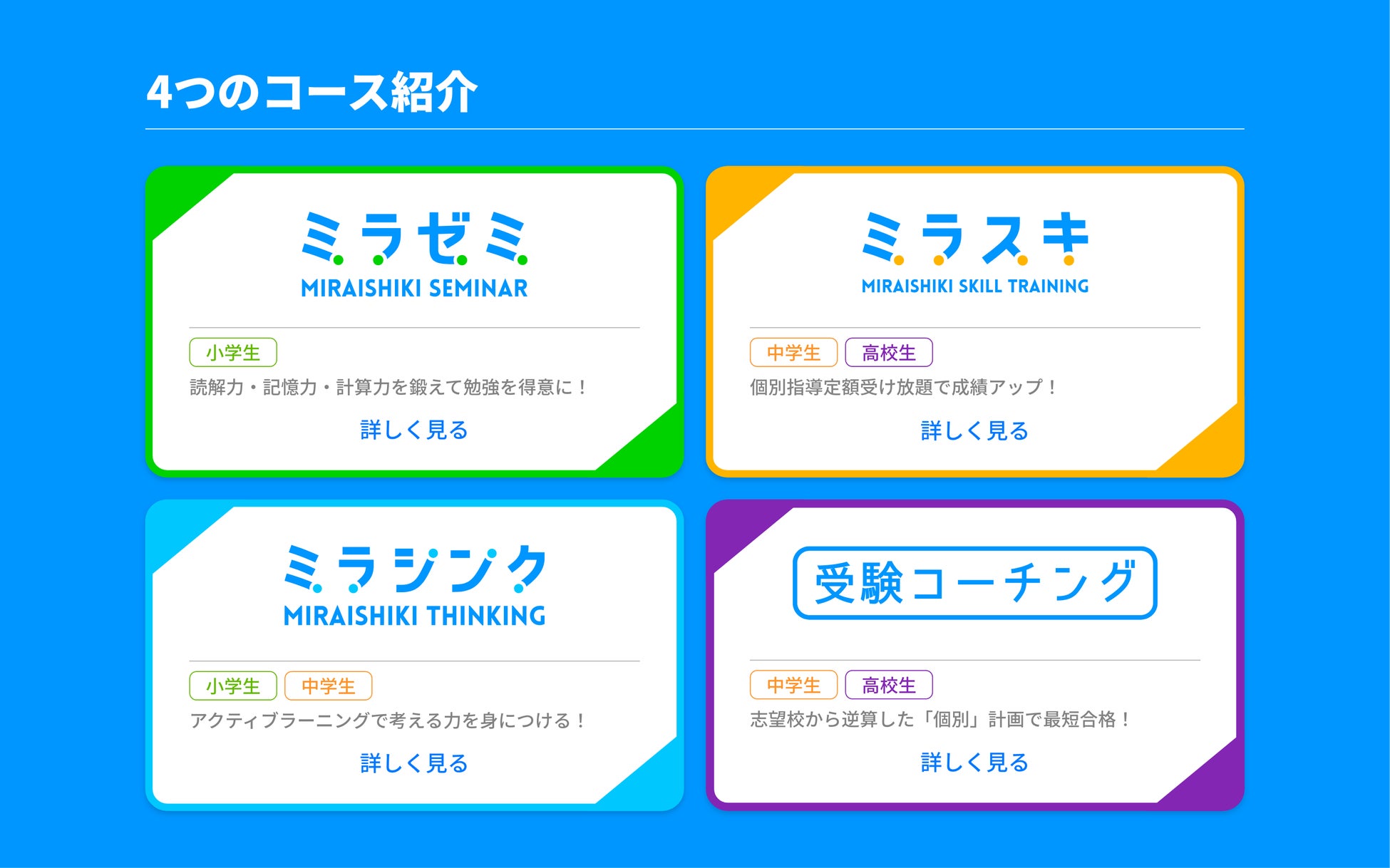 「ミライ式」ブランドのもと、以下の4コースを展開します。