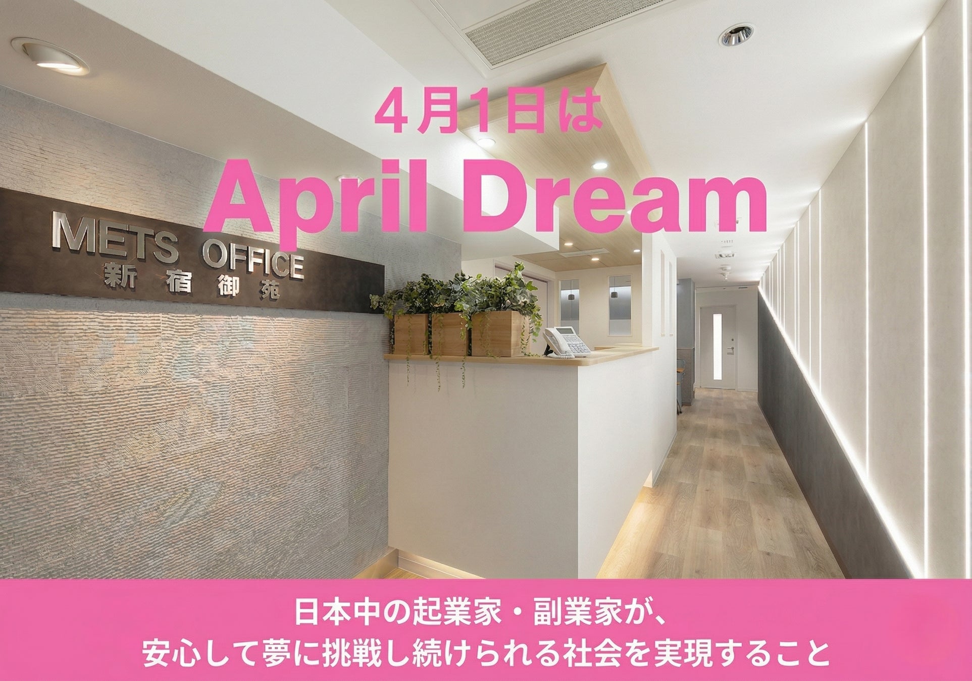 オリンピア興業株式会社(本社:東京都中央区日本橋兜町、代表取締役:葉山相也)が運営する「METSオフィス」は、4月1日を夢を発信する日にしようとするPR TIMESのプロジェクト「April Dream」に賛同しています。このプレスリリースは、私たちの「夢」です。