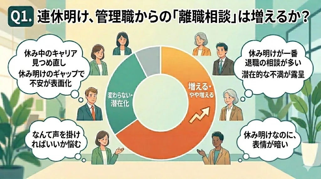 100名のコーチへの調査では、連休明けに離職やキャリアに関する相談が増える傾向にあることが示されました。